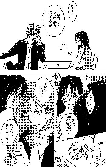 友人から良からぬ噂を聞きつけた恵は、それとなく隼人に尋ねてみた。 「・・・ねえ、隼人って付き合ってる人とかいるの・・・?」 隼人の返事に続く場面↓